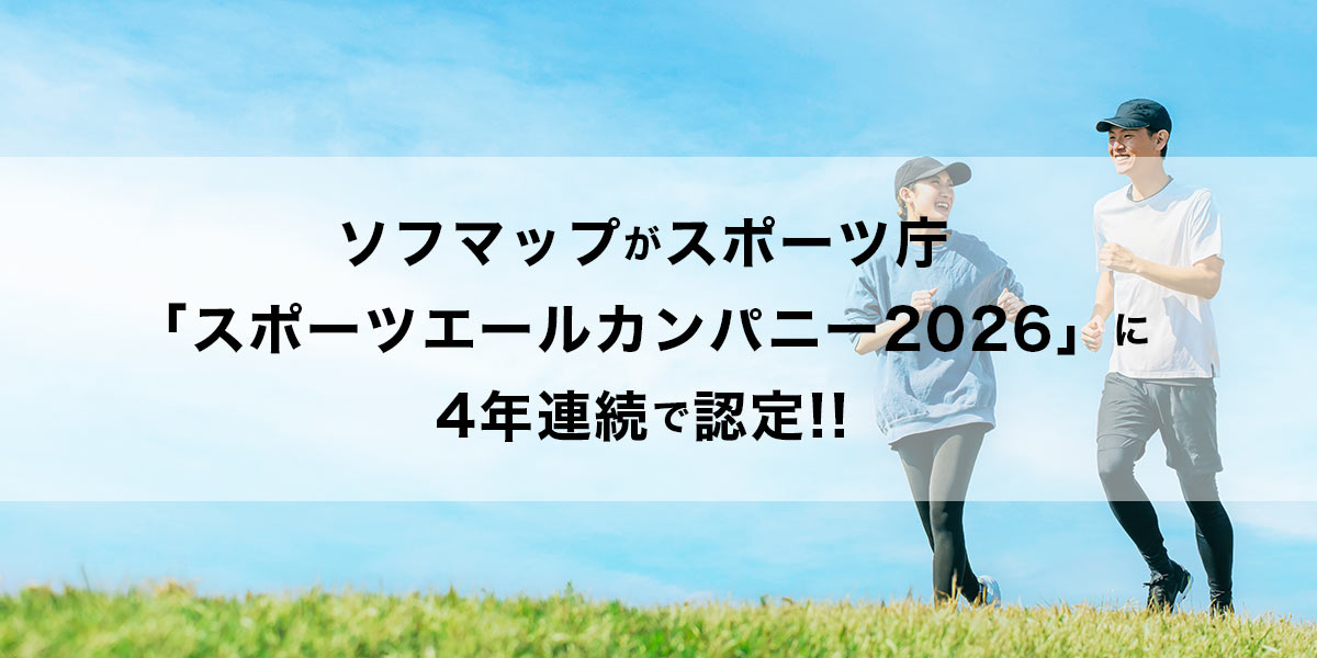 株式会社ソフマップは、スポーツ庁が実施する「スポーツエールカンパニー2026」において、従業員の健康増進のためにスポーツ活動を支援・推進している企業として認定されましたことをお知らせいたします。2023年の初認定から4年連続の認定となります。