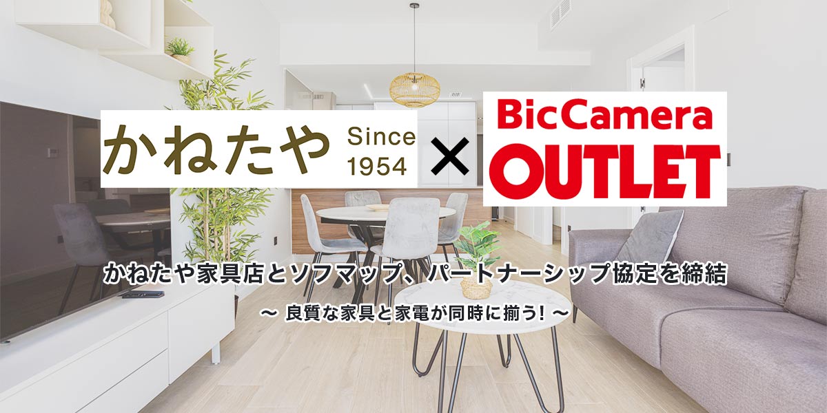 株式会社ソフマップ(本社:東京都千代田区、代表取締役社長:中阿地 信介 以下「当社」)と株式会社かねたや家具店(本社:千葉県千葉市、代表取締役社長:四谷 正明 以下「かねたや家具店」)は、互いの専門性を掛け合わせ、お客様に「理想の空間」と「最新の利便性」を同時提供するため、パートナーシップ協定を2026年3月1日(日)に締結いたしますことをお知らせいたします。