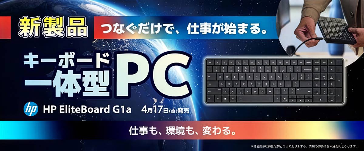 ビックカメラグループは2026年4月17日(金)よりキーボード筐体にWindowsパソコンを組み込んだ次世代型AIパソコン「HP EliteBoard G1a Next Gen AI PC」の先行販売を、ビックカメラ、コジマ、ソフマップのパソコン取り扱い各店およびインターネット通販サイトにて開始いたします。ビックカメラ3店舗(池袋カメラ・パソコン館、池袋西口IT tower店、有楽町店)およびソフマップ1店舗(AKIBAパソコン・デジタル館)においては、「HP EliteBoard G1a Next Gen AI PC」をお試しいただける様に店頭展示を実施いたします。発売日時点で実際にお試しいただけるのは国内でビックカメラグループ4店舗のみとなります。