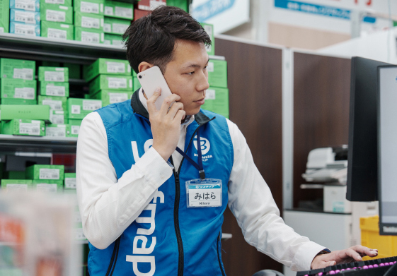 店舗の開店に支障がないか朝一番に売り場へ足を運び、商品の補充や店内に異常がないかチェックをします。次に前日までの売り上げ・サービス実績を確認し、実績が芳しくない部門の分析や対策、大宮店のお客様のニーズに合わせて、その週に販売を強化したい商品を本部へ補充依頼を行っています。