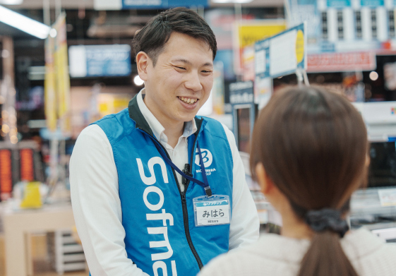 店長という立場上、最初は育休が取れるのか、店舗の運営はどうなるのかなど不安でしたが上司に相談したら、他店舗から人員を手配していただいたりと部署全体から手厚いサポートを受けることができ、無事に育休を取得することができました。復帰後もメンバーから温かく迎え入れていただき、居心地が悪くなることもなく育休前と変わらず業務をこなしています。役職に左右されず気兼ねなく育休を取得できる環境は、自身のライフプランが立てやすくソフマップの大きな魅力の1つだと感じています。