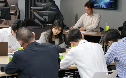 ソフマップの担当者も交えた打ち合わせは、週1回の頻度で実施。学生からは「カタカナ語を一切使わずに説明するコツはありますか? 」「教材に適したフォントサイズや、気を付けるべき配色を教えてください」といった具体的かつ熱意あふれる質問が次々と寄せられ、プロジェクトに対する真剣な姿勢が強く伝わってきました。