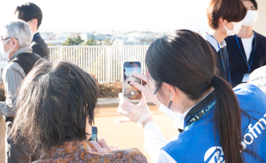 受講者の皆さんは、教わったばかりのズーム機能や構図のテクニックを駆使して夢中でシャッターを切り、「見て、こんなに綺麗に撮れたわよ!」と大盛り上がり。撮影したばかりの写真をその場でご家族やご友人にLINEで送信する演習では、即座に返信が届くデジタルならではのスピード感に驚きの声が上がり、会場のあちこちで満面の笑顔がこぼれる温かなひとときとなりました。