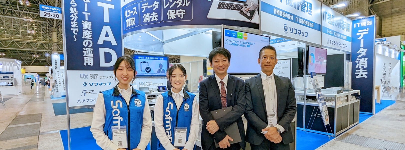 | 展示内容 | 株式会社ソフマップ:ITADサービスソリューション・事例紹介 <共同出展企業> 株式会社ウルトラエックス:ソフトウェア消去 株式会社TCE買取・回収・オンサイト消去 アプライドテクノロジー株式会社:レンタル・第三者保守 |